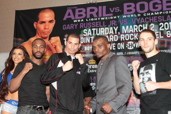 On Saturday night at the Hard Rock Hotel in Las Vegas, Richard “The Tiger” Abril and Sharif “The Lion” Bogere will let their fists fly in an effort to prove who is the king of boxing’s four sided jungle. But on Thursday it was their respective trainers that set off fireworks. When Bogere (23-0, 15 KOs) took to the podium, it was all pleasantries as the Ugandan fighter spoke with the usual bravado.