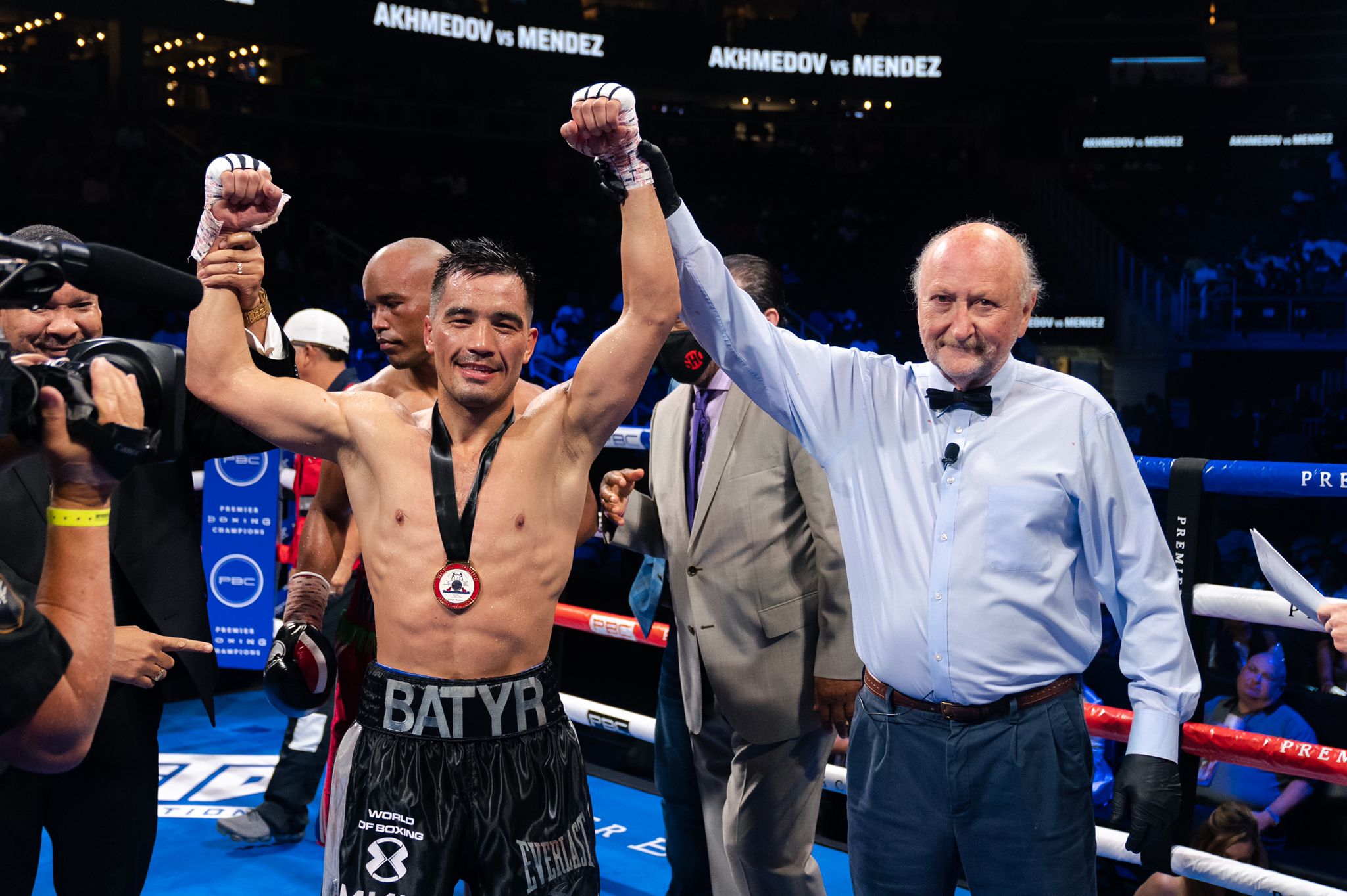 The hard-hitting Super lightweight Batyr Akhmedov scored an important victory over the experienced Dominican Argenis Mendez by 8-round knockout the Davis-Barrios undercard in Atlanta, Georgia.