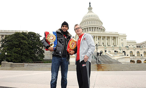 WBA super lightweight world champion Amir Khan and trainer Freddie Roach made a photo tour of Washington, DC, posing at various landmarks in the nation’s capital in advance Saturday’s world title defense against #12 rated super lightweight contender Lamont Peterson at The Walter E. Washington Convention Center in Washington, DC which will be televised live on HBO in the United States and on Sky Sports in the United Kingdom.