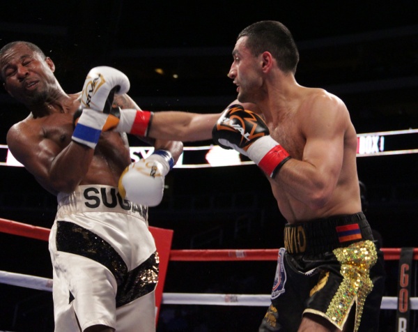 Saturday night at the Gila River Arena in Glendale, Arizona, WBA World interim welterweight champion, 27-year-old David Avanesyan (22-1-1, 11 KOs) from Pyatigorsk, Russia, outpointed 44-year-old “Sugar” Shane Mosley (49-10-1, 41 KOs), the future Hall of Famer from Pomona, California, to retain his title over 12 scheduled rounds.