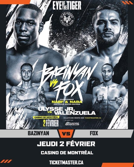 Erik Bazinyan will defend his North American Boxing Association (NABA) World Boxing Association (WBA) super middleweight crown against veteran Alantez Fox on Thursday at the Casino de Montreal.