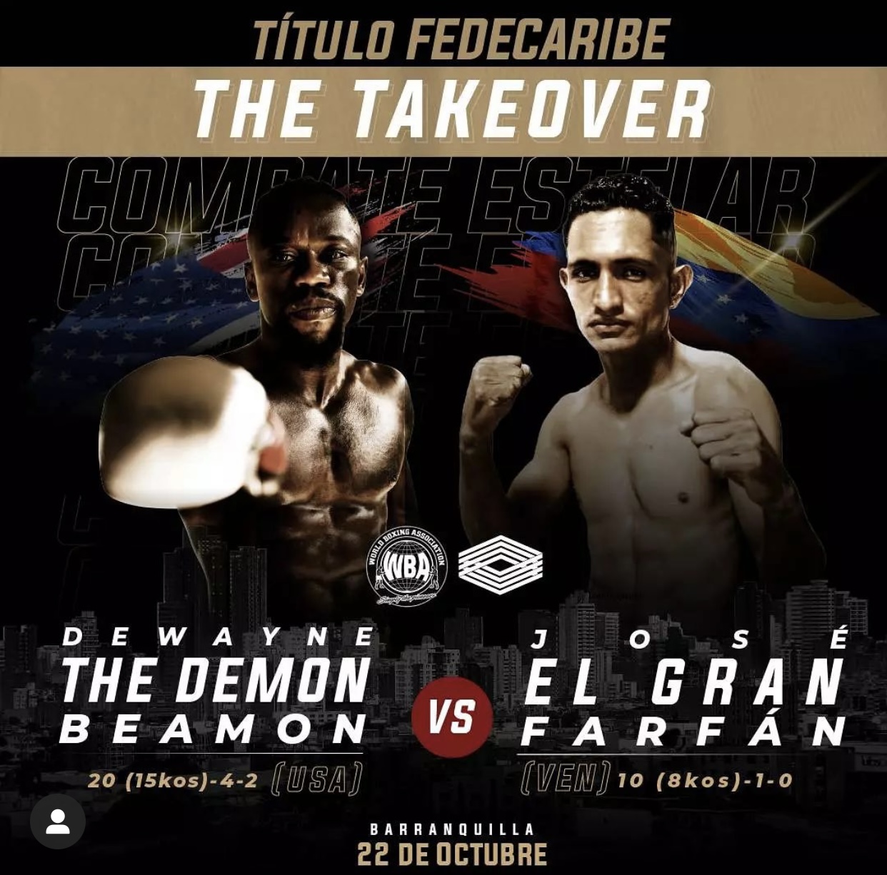 American Dwayne Beamon and Venezuelan José Farfán will fight for the World Boxing Association (WBA) Fedecaribe super flyweight title this Friday at the Sugar Baby Rojas Coliseum in Barranquilla, Colombia.