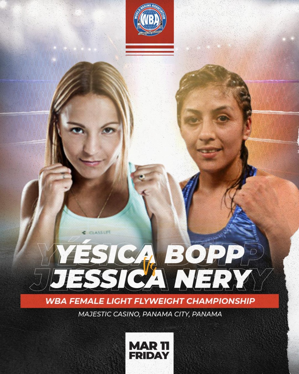 Yésica Bopp will step into the ring as the headliner of the XXXVII edition of the World Boxing Association’s (WBA) KO Drugs with the defense of her WBA junior flyweight title against Mexican Jessica Nery Plata this Friday at the Majestic Casino, in Panama City.
