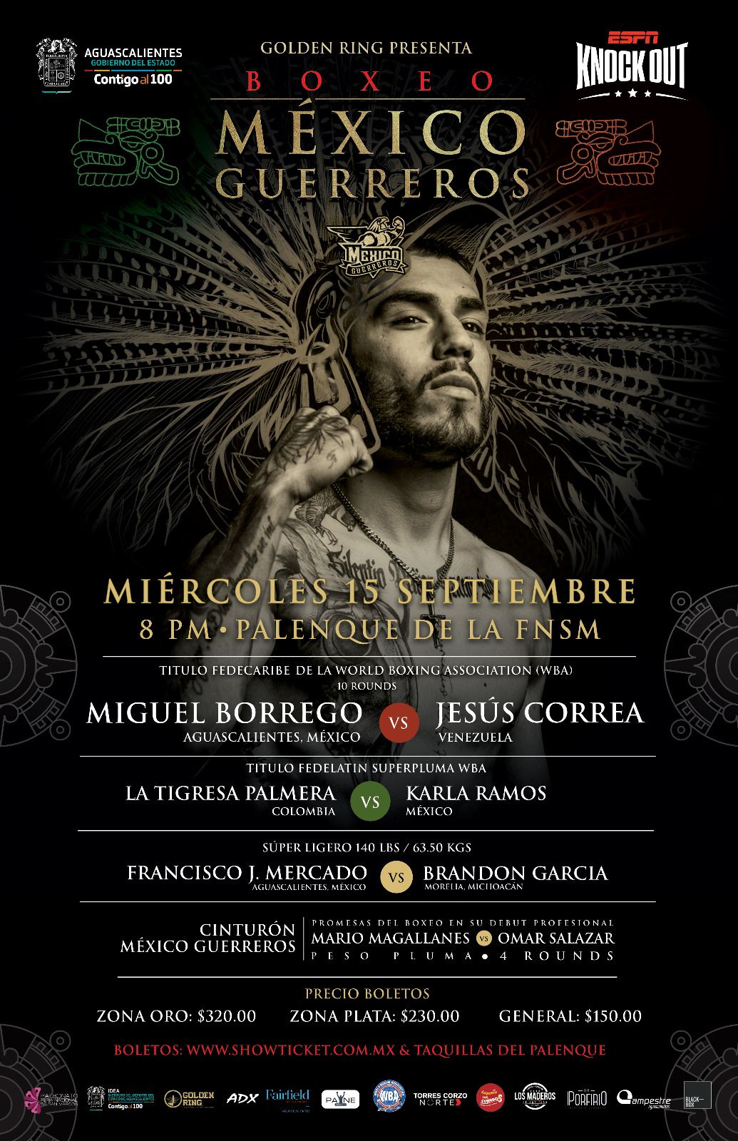 Two regional titles of the World Boxing Association (WBA) will be disputed on Wednesday in a great tribute to the Independence Day that will take place in Aguascalientes, Mexico, and that will have the local Miguel Borrego facing the Venezuelan Jesus Correa in the main bout of the evening organized by the Golden Ring company.