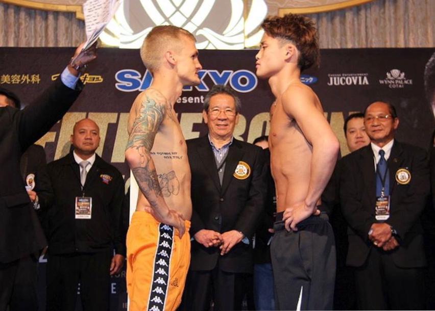 Hekkie “The Hexecutioner” Budler (32-3, 10KO’s) and Hiroto Kyoguchi (11-0, 8KO’s) came in under the light flyweight title limit, with champion Budler coming in at 106.8 pounds and challenger Kyoguchi coming in at 107.0 pounds.