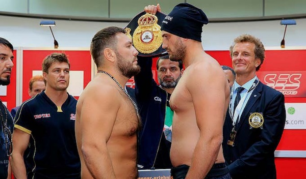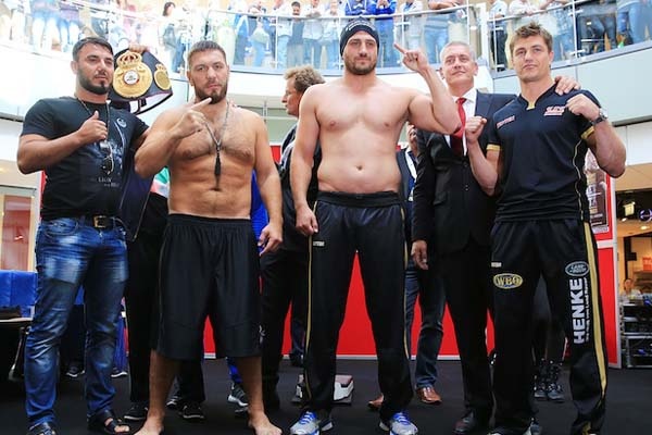 In advance of Saturday’s championship bout at GETEC Arena in Magdeburg, Sachsen-Anhalt, Germany, WBA World heavyweight champ Ruslan Chagaev (33-2-1, 20 KOs), from Hamburg, Germany, by way of Andijan, Uzbekistan, and #12 ranked Francesco Pianeta (31-1-1, 17 KOs), from Gelsenkirchen, Nordrhein-Westfalen, Germany, by way of Corigliano Calabro, Calabria, Italy, the fighters took to the scales one day prior to tomorrow’s big event.