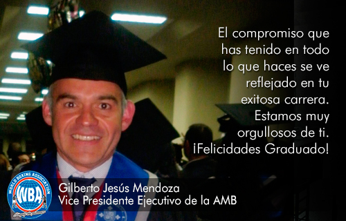 Gilberto Jesus Mendoza, Executive vice president of the World Boxing Association, achieved a new personal goal getting his degree in Law and Political Science.