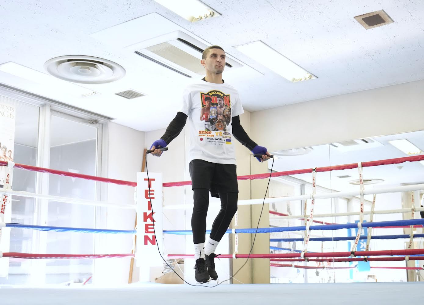 The Ukrainian arrived in Japan this week to get acclimated for his showdown with the home fighter and on Monday he shared with the press in a training session along with his staff.