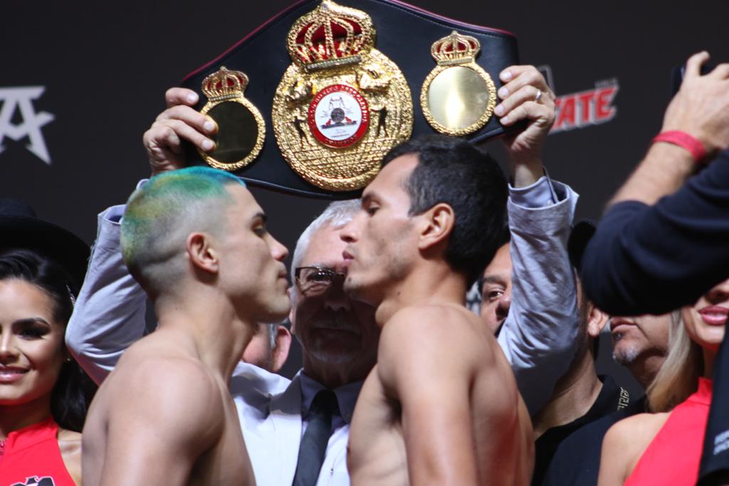 Joseph “JoJo” Diaz and Freddy Fonseca will be battling for the World Boxing Association (WBA) Gold Super Featherweight Title. Diaz came in at 129 1/2 lbs, while Fonseca came in at 130 lbs, enabling them to fight for the WBA gold title.