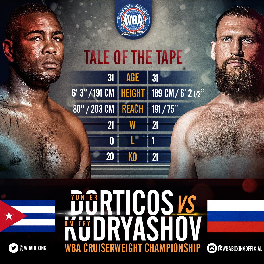 The fight promises a lot of action as it is a clash between two powerful boxers with interesting styles who are hungry to cling to the WBA belt. Dorticos has already been Interim Champion of the division, whereas Kudryashov has held the International belt of the same weight.