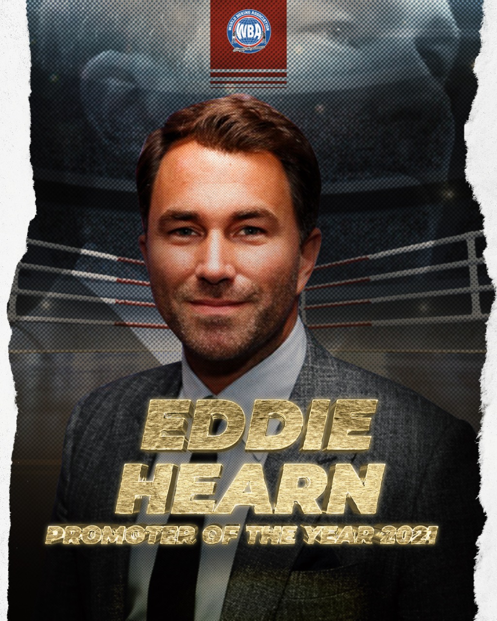 Eddie Hearn was awarded Promoter of the Year by the World Boxing Association (WBA) after collecting the votes of the specialized panel and he opinion of the fans, who participated in different surveys to decide the award.