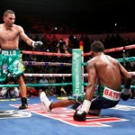 A monstrous right hand flying from Lopez left Padilla very hurt to at the beginning of the seventh. Lopez attempted to capitalize chasing the Colombian, shooting at point-blank range, in search of the “kill”. The Colombian, who already barely could through his hands, endured everything and a little more, until Lopez finally sent him to the canvas with another devastating right hand, with seconds to end the assault. Padilla, with much effort returned to defeat the count of Puerto Rican referee, Luis Pabón.