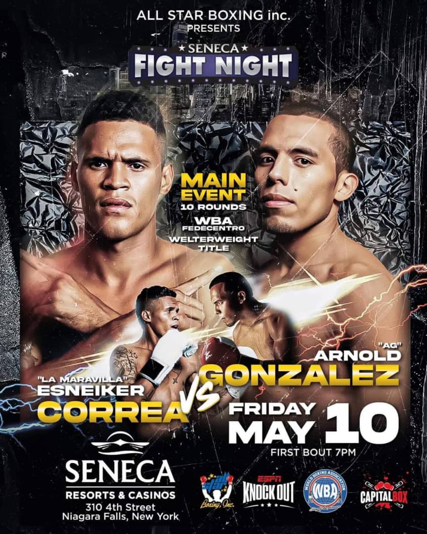 It has been confirmed that next Friday, May 10, the undefeated American Arnold Gonzalez will fight Esneiker Correa for the World Boxing Association (WBA) Welterweight Fedecentro title (vacant).