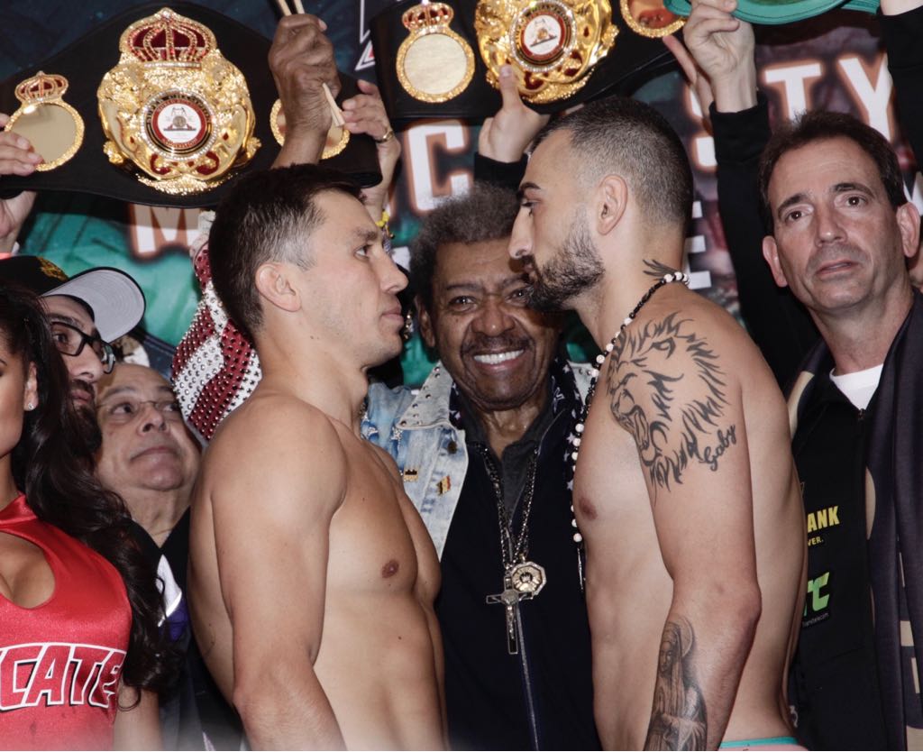 At the Sheraton Los Angeles Hotel at LAX in Los Angeles, California, Gennady Golovkin (37-0-1, 33KO’s) made weight coming in at 160lbs even and Vanes Martirosyan (36-3-1, 21KO’s) made weight coming in at 159.8lbs.