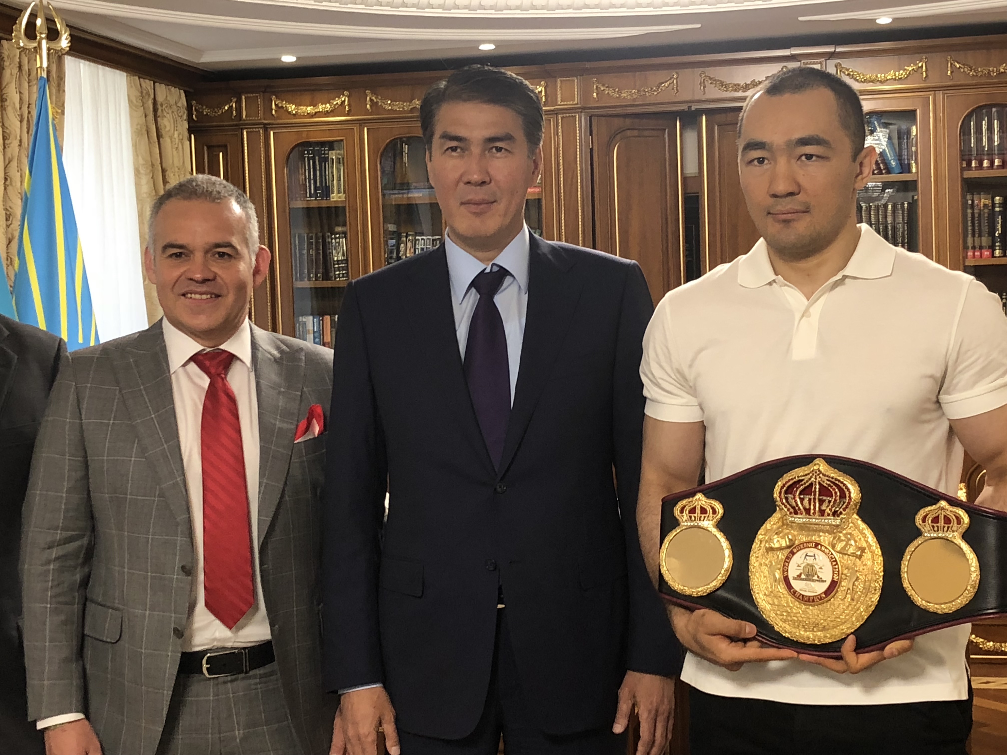 On Monday, July 9th, Mendoza held an important meeting with the mayor of Astana, Asset Orentsyevich Issekeshev, with whom he shared together with Shumenov a pleasant boxing talk in which they talked about plans to develop even more boxing in the city. In addition, the highest leader of the WBA gave the mayor a WBA title strap and in turn received a book with the history of Astana.