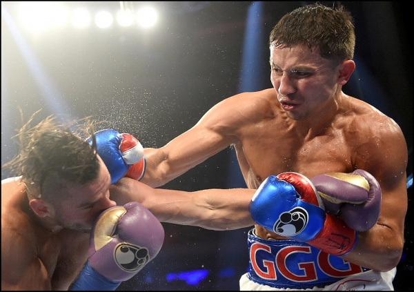 In a rare title unification bout, WBA, IBO, and interim WBC middleweight champion Gennady Golovkin (34-0-31 KOs), from Los Angeles by way of Karaganda, Kazakhstan, TKO’d IBF middleweight champion David Lemieux (34-3, 32 KOs), from Montreal, Quebec, Canada, at 1:30 of round eight after a one-sided beatdown at Madison Square Garden.