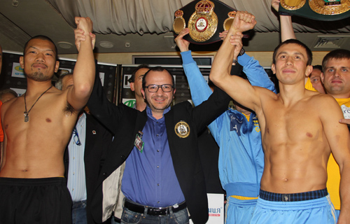 La ceremonia del pesaje oficial estuvo bajo la supervisión de Jesper Jensen, supervisor de la Asociación Mundial de Boxeo. El acto se realizó hoy viernes en Ucrania, mismo lugar que será la sede para el combate entre Golovkin y Fuchigami de mañana sábado.