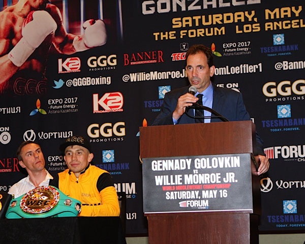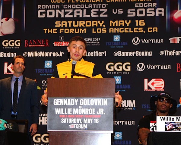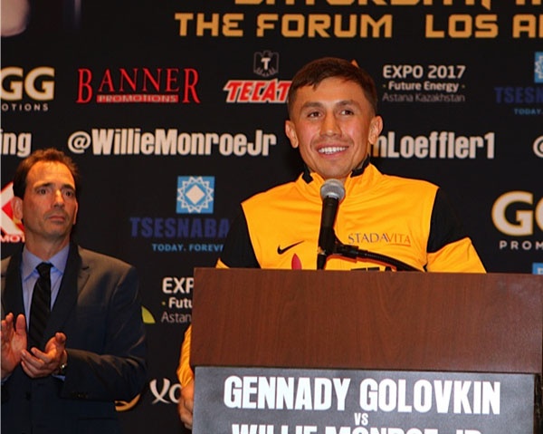 “You have two of the best pound for pound fighters in the world it’s really a throwback show in honor of all the great fights they have held at the Forum,” K2 Promotions Tom Loeffler said in opening up the press conference. “We are proud to present “GGG” Golovkin vs. Willie Monroe Jr. for the middleweight championship. We are really excited about this show.”