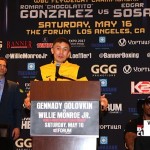 WBA, IBO, WBC Interim middleweight champion Gennady “GGG” Golovkin (32-0, 29 KOs) of Kazakhstan and middleweight contender Willie Monroe Jr. (19-1, 6 KOs) of Ithaca, New York held their final press conference Tuesday afternoon at the Westin Hotel LAX. Golovkin and Monroe will square off this Saturday at the Forum of Los Angeles live on HBO World Championship Boxing.