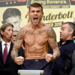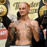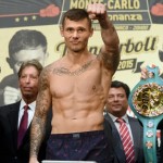 Golovkin (31-0, 28 KO’s) stopped the scale at 159.8 lbs. (72.07 kgs) and Murray (29-1-1, 12 KO) gave 159.9 lbs (72.52 kgs).
