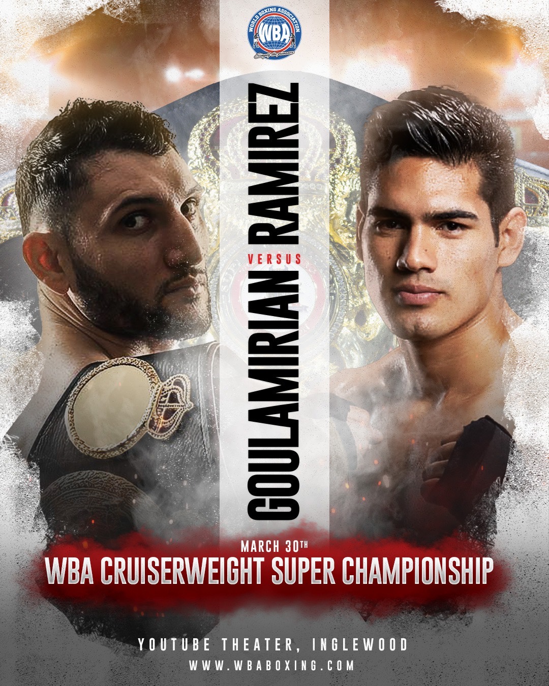 Arsen Goulamirian will defend his World Boxing Association (WBA) cruiserweight belt against Gilberto Ramírez this Saturday at the YouTube Theater in Inglewood, California.
