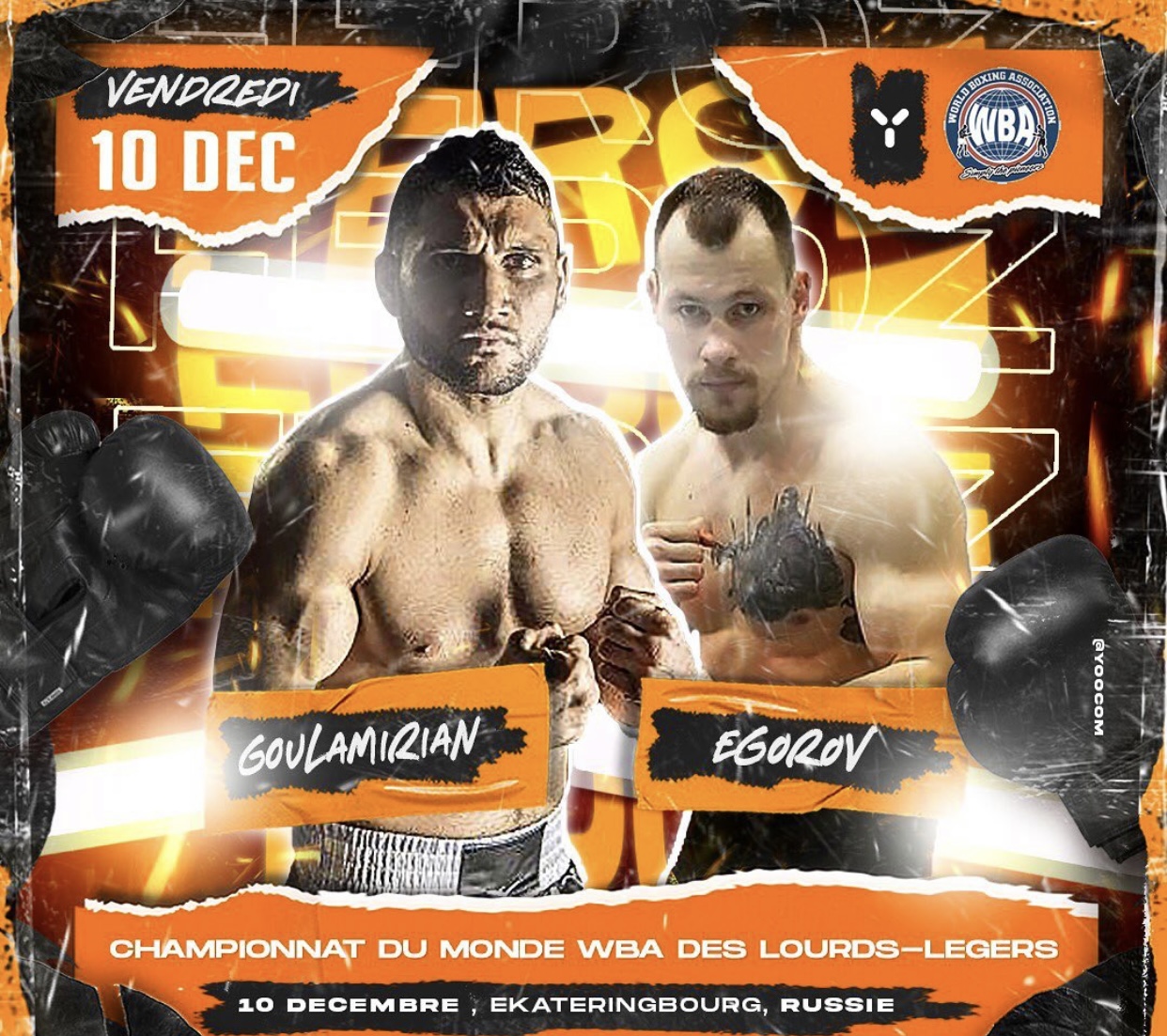 The Frenchman of Armenian descent, Arsen Goulamirian, will fulfill his mandatory defense of the World Boxing Association (WBA) Super Cruiserweight Championship against Russian Aleksei Egorov, in Ekaterinburg, Russia, this Friday.