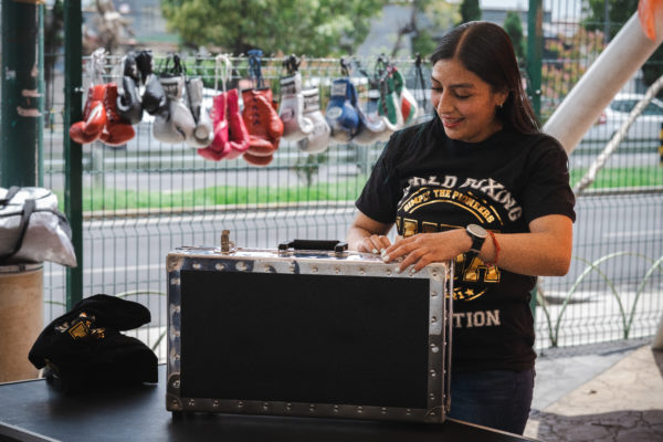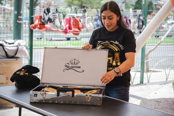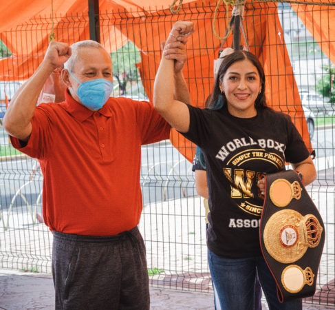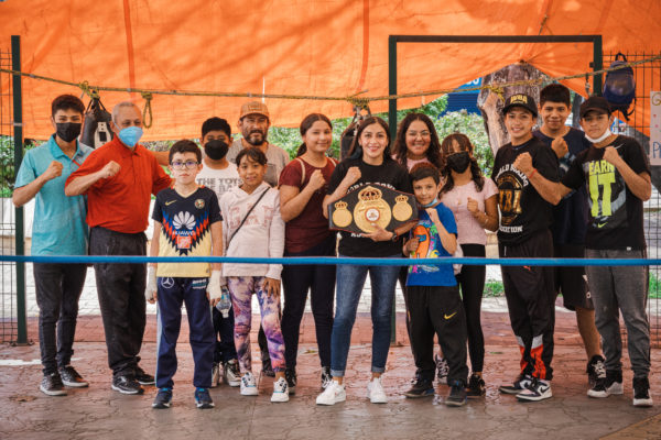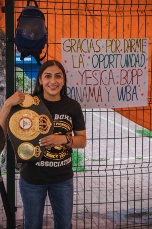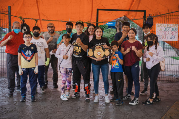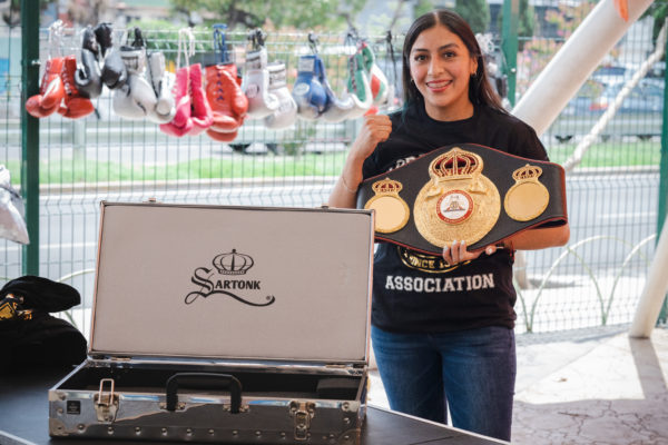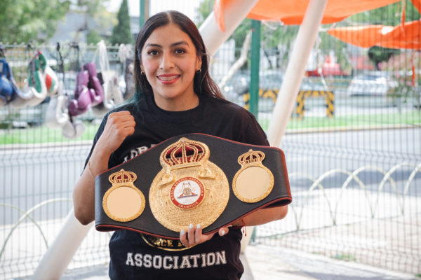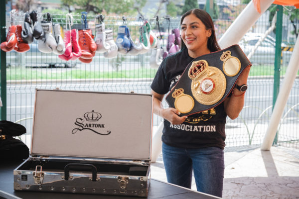 Jessica Nery Plata received her WBA belt. Majo Gómez
