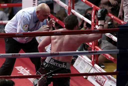 WBA regular heavyweight champion Alexander Povetkin (26-0, 18 KOs) annihilated previously unbeaten Andrzej Wawrzyk (27-1, 13 KOs). After a slow round one, Povetkin dropped Wawrcyk with a huge right hand early in round two, then punished Wawrcyk for the rest of the round. Povetkin dropped Wawrcyk twice in round three to end it. Time was 2:03. With the win, Povetkin ensured his $23 million showdown with WBA/IBF/WBO/IBO heavyweight champion Wladimir Klitschko later this year. WBC heavyweight champion Vitali Klitschko was looking on at ringside.