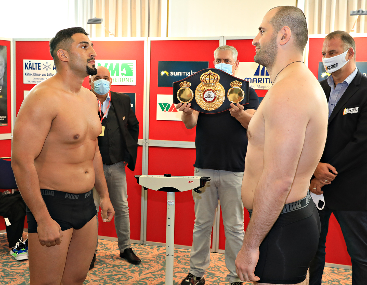 Agit Kabayel and Evgenios Lazaridis made weight for their bout on Saturday at the Elbauepark in Magdeburg, Germany, where they will fight for the World Boxing Association (WBA) Continental Heavyweight Championship.
