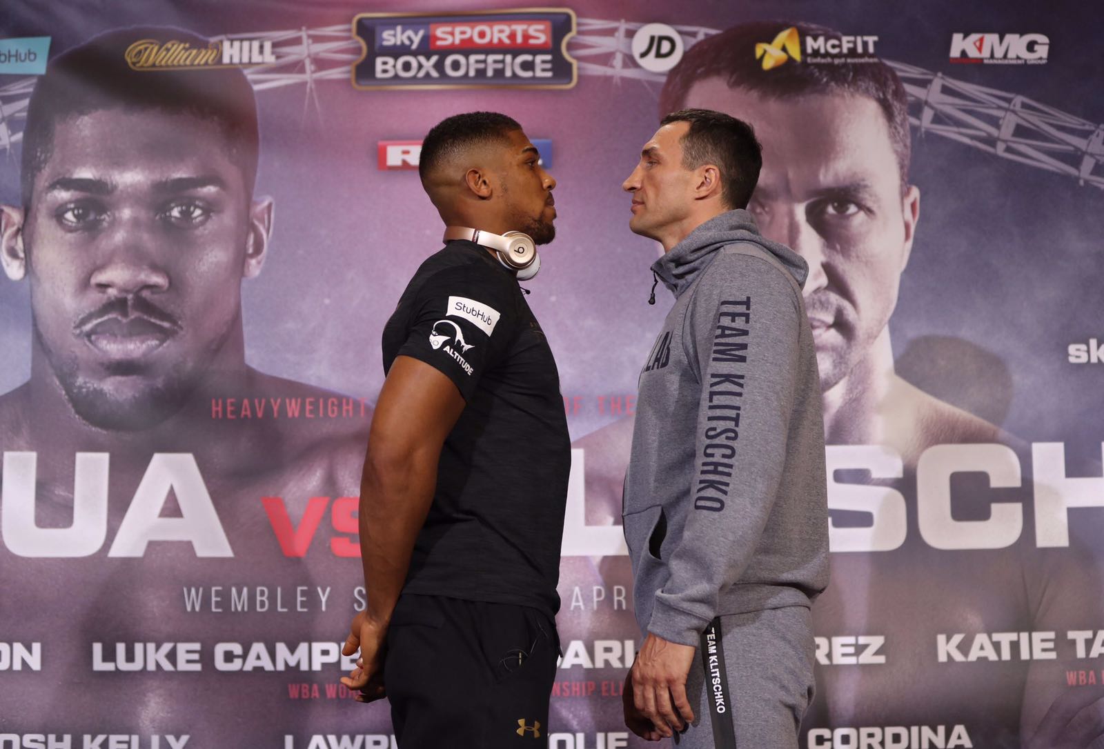 Klitschko and Joshua go face to face at press conference. PhotoL Matchroom.