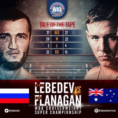 The World Boxing Association Cruiserweight super champion, Russian Dennis Lebedev (29-2, 22 KO) and his challenger, Australian Mark Flanagan (22-4, 15KO) complied with the weigh in ceremony for their fight next Sunday in Ekaterimburg, Russia.