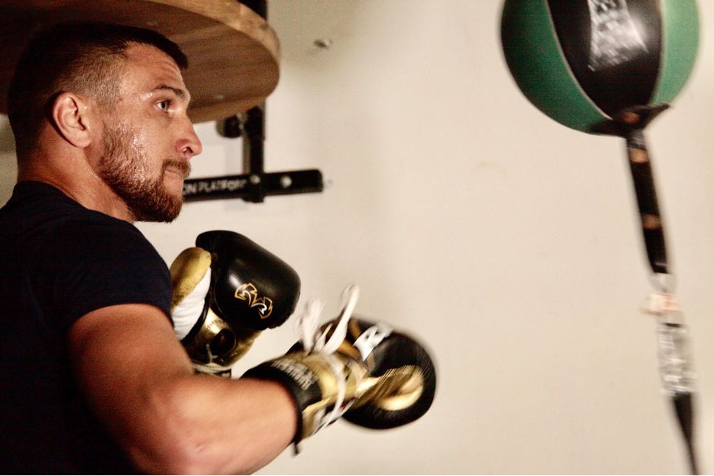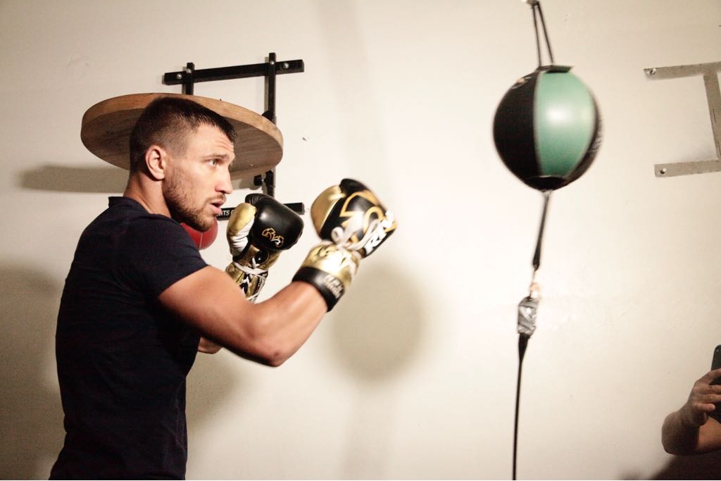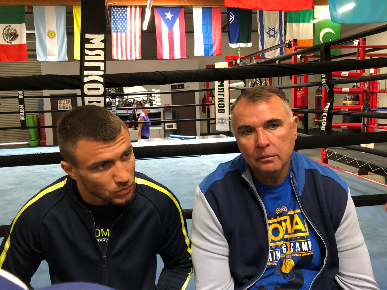 Vasyl Lomachenko held a media workout day from the Boxing Laboratory gym in his home base of Oxnard, California, where he sat down with members of the press to field questions alongside his manager (and interpreter) Egis Klimas.