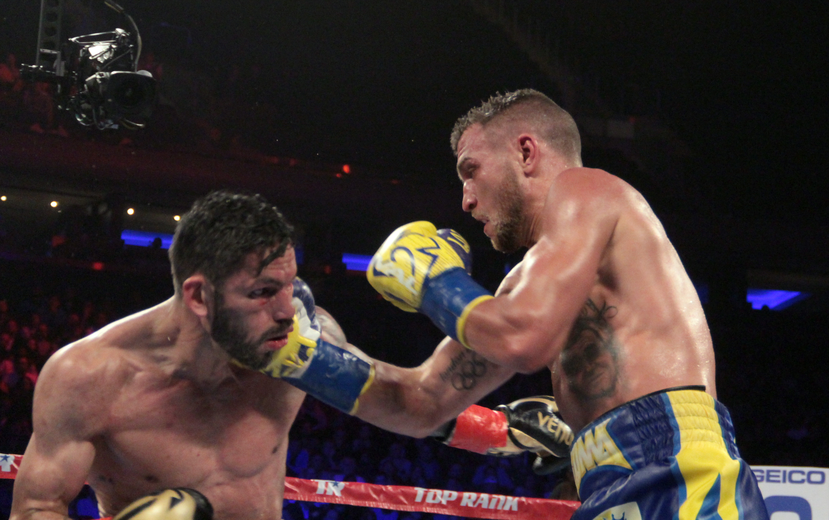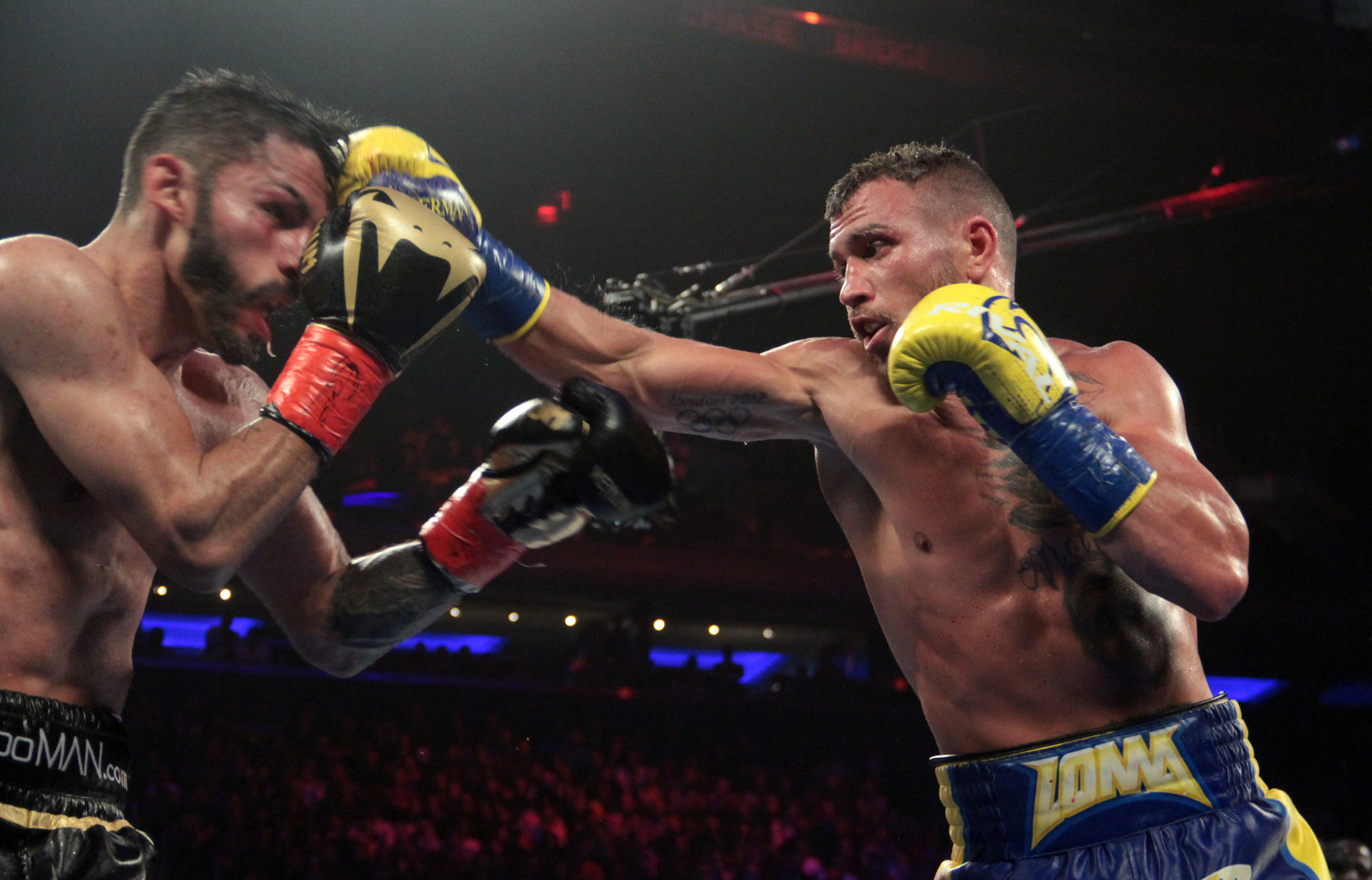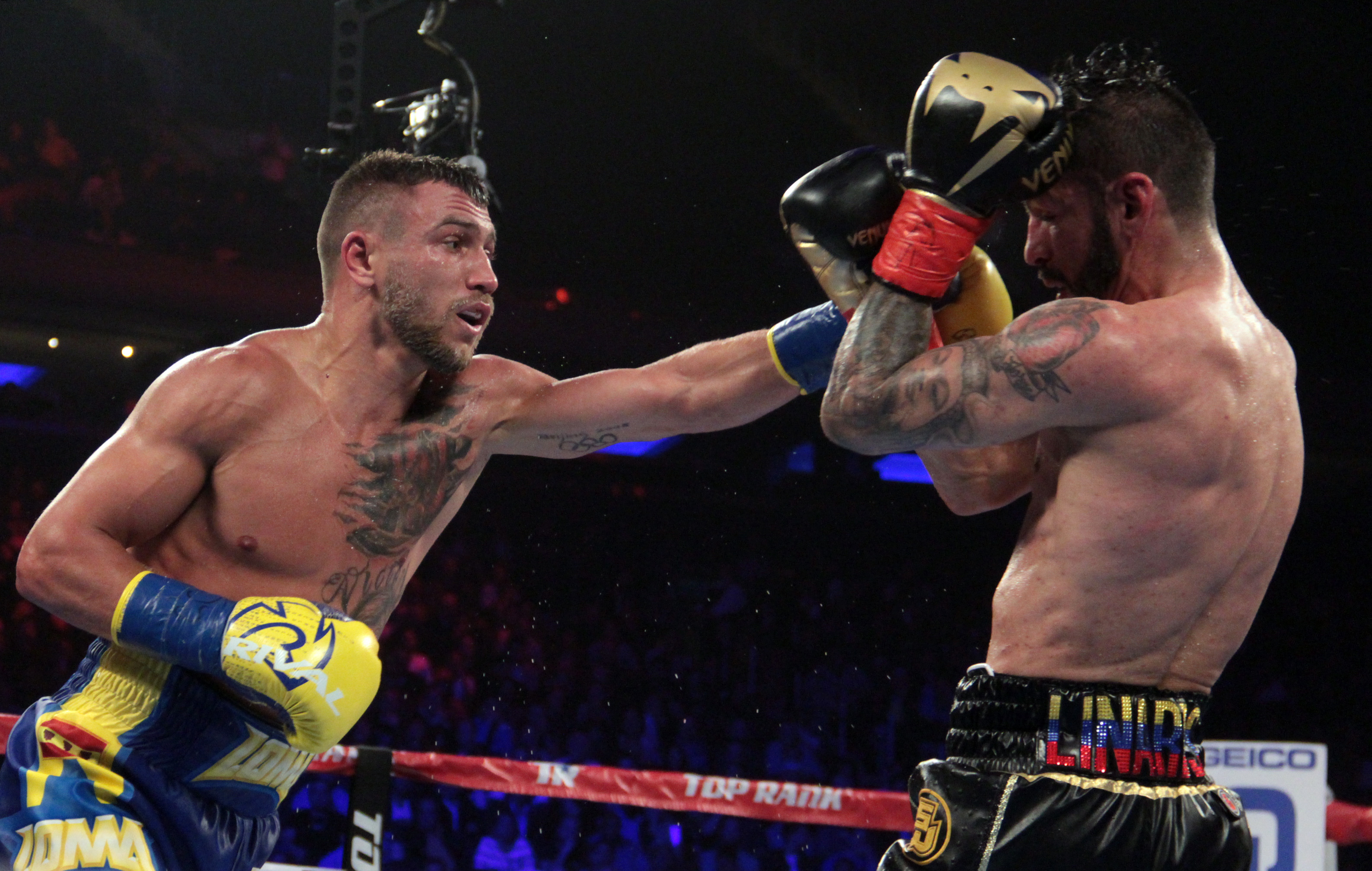 At Madison Square Garden before a packed house Vasyl Lomachenko moved his record to 11-1 and scored his ninth stoppage victory in what could be a contender for fight of the year as he stopped Jorge Linares at the 2:08 mark in the tenth round of a great battle between two world class fighters.