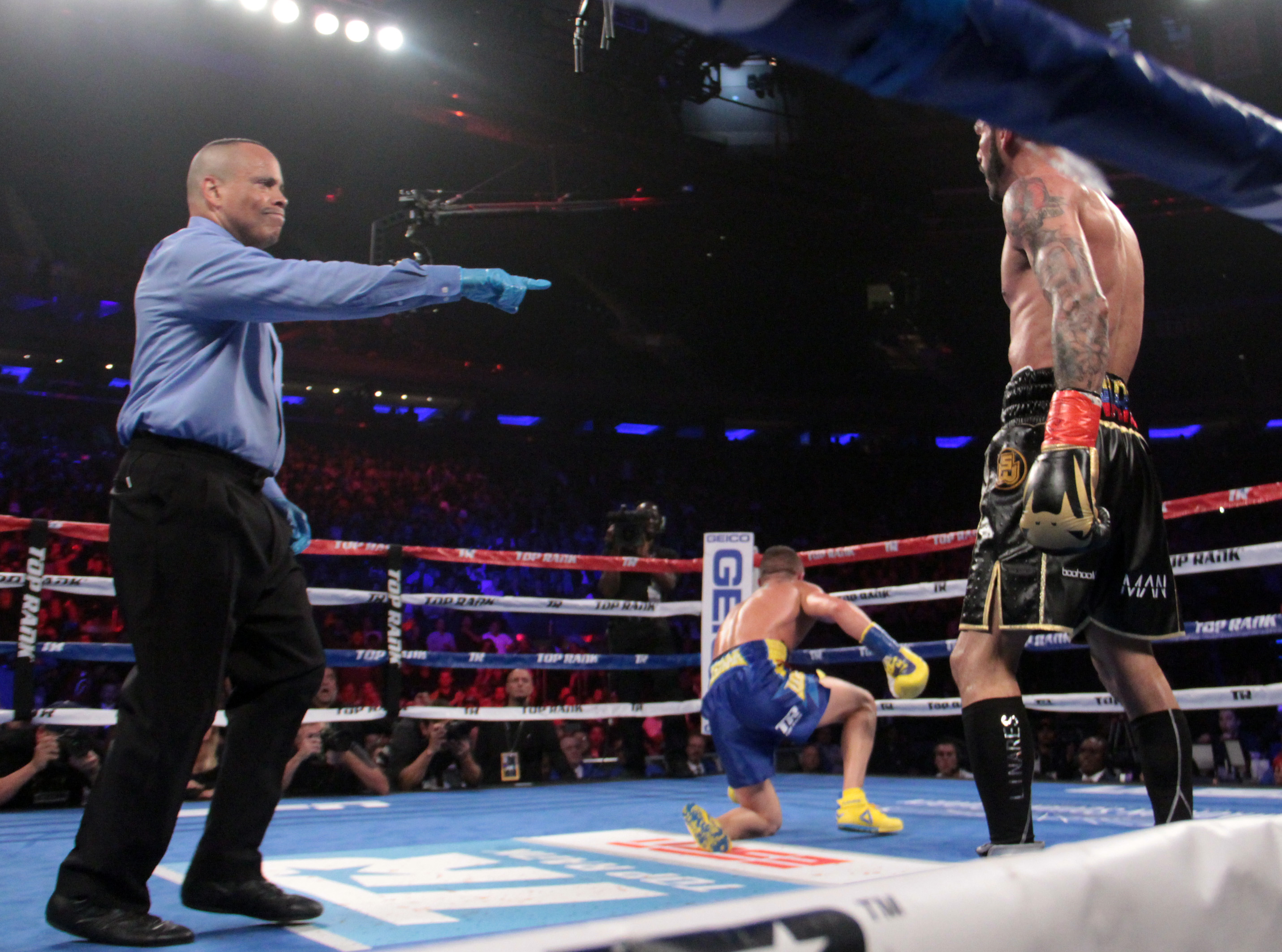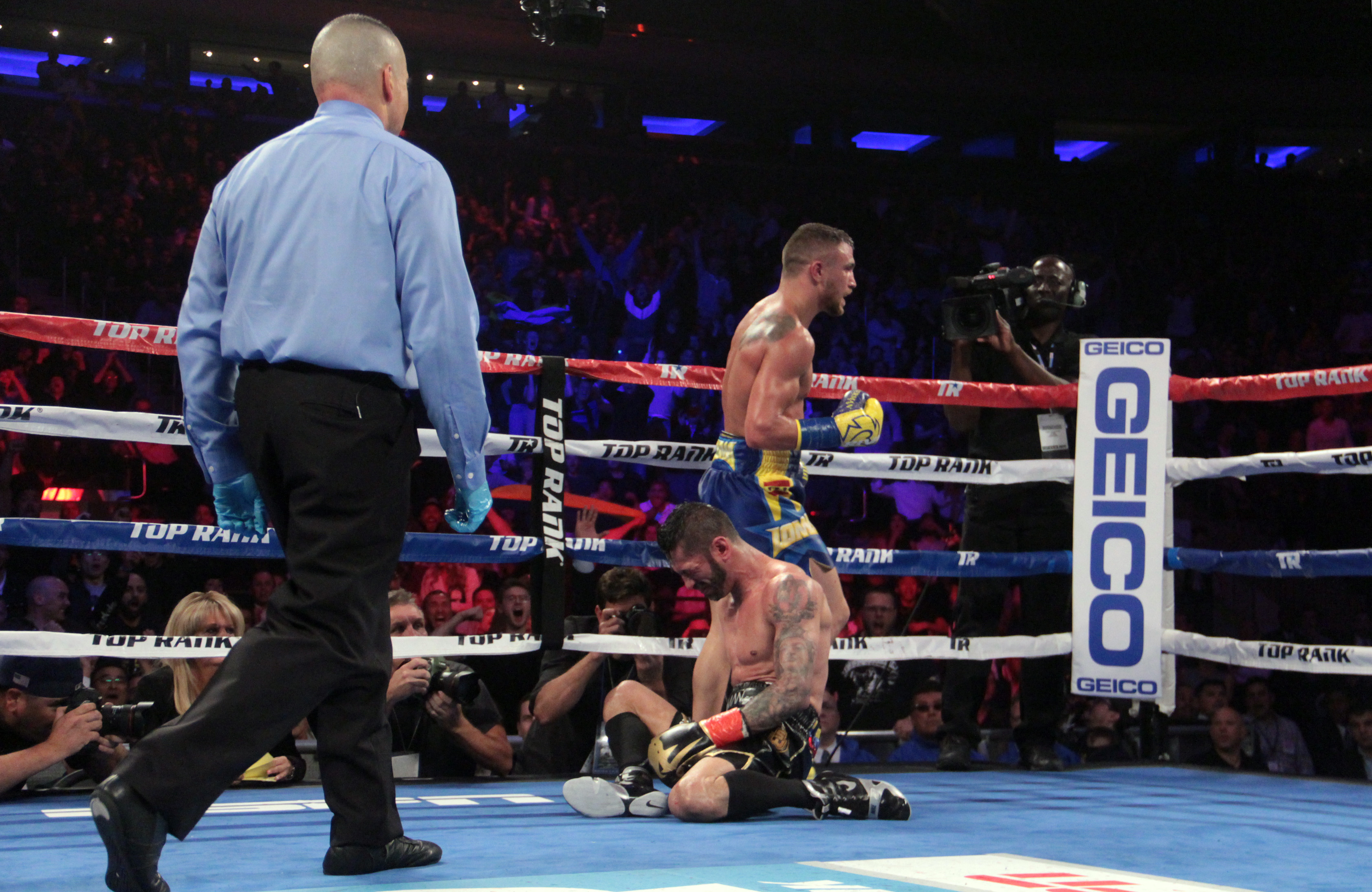 The excitement came in the sixth round when Linares landed a right hand to the chin that floored Lomachenko for the first time in his professional career. The roof nearly caved in on The Garden as everyone knew this was a career defining moment for one, or perhaps both fighters.
