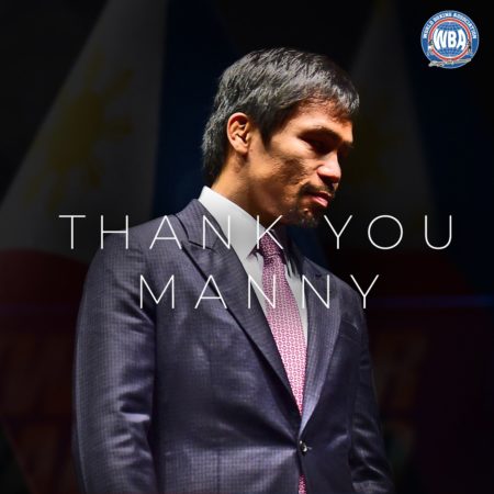 The WBA congratulates Manny for his great career and is proud to grant this recognition to a man who has managed to represent the black and gold colors with his impeccable career. A big shout out to our Centennial Champion, Mr. Manny Pacquiao.