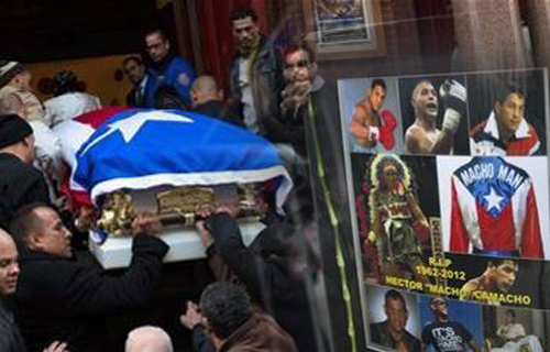 En un día de otoño nublado y de mucho frío, el velorio derivó en un despliegue del folclore de Puerto Rico. Los compungidos asistentes agitaron banderas de la isla, hicieron retumbar la música salsa y coreaban “Macho Time” alrededor de la manzana.