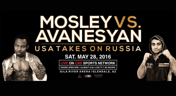 Shane Mosley vs. David Avanesyan will be televised live on CBS Sports Net starting at (10:30 PM ET/7:30 PM PT).
