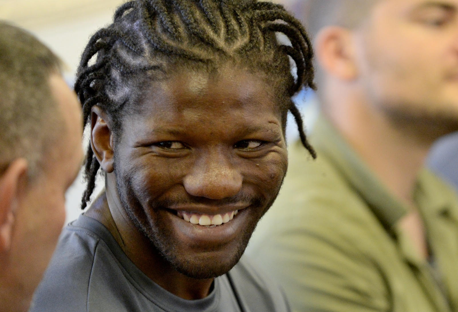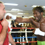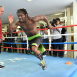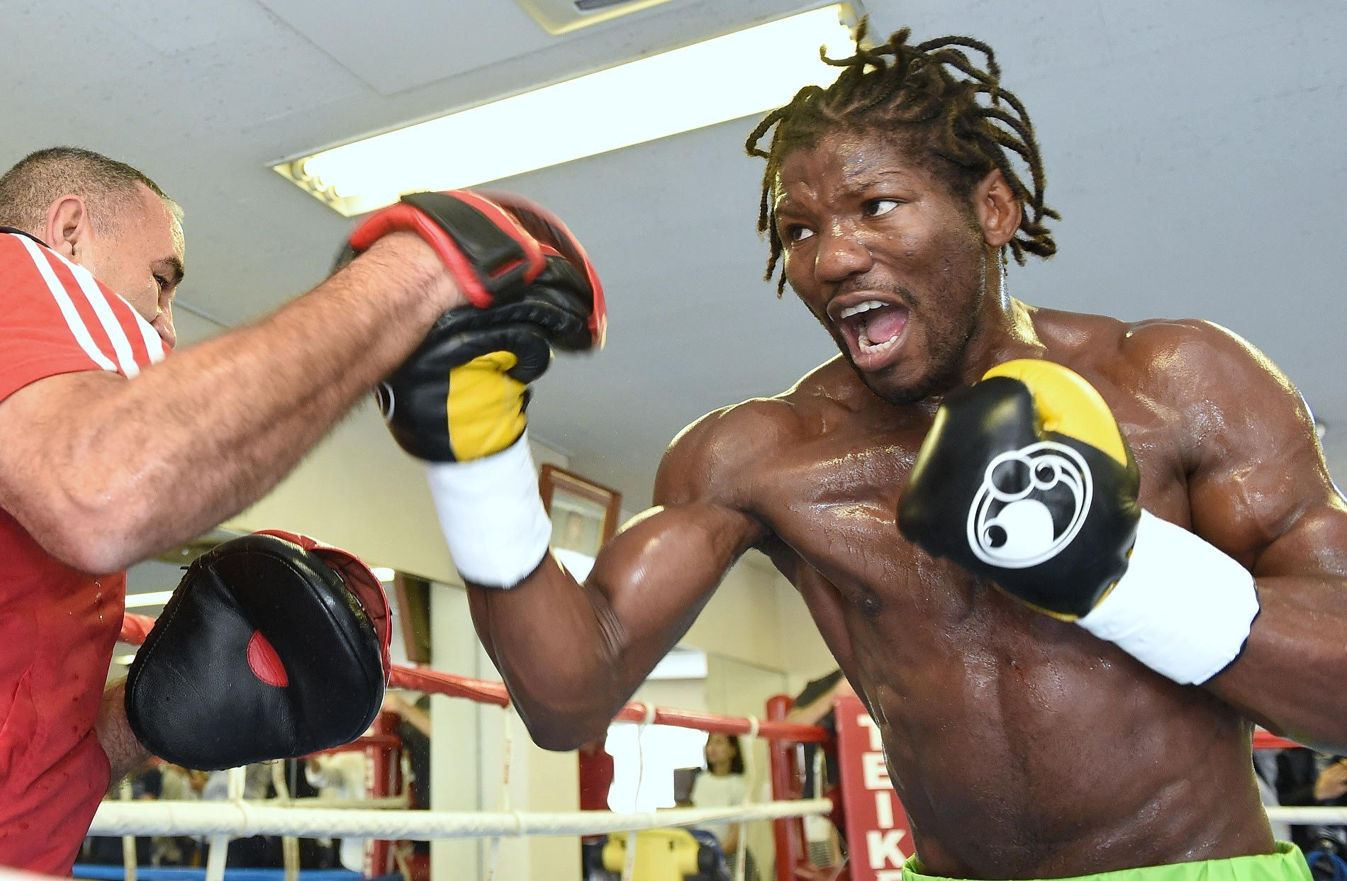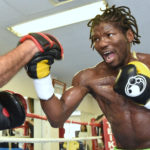 The Cameroonian showed his fists power with the mitts, punching bag and jumped the rope. He ended by telling the press he was ready for the battle.