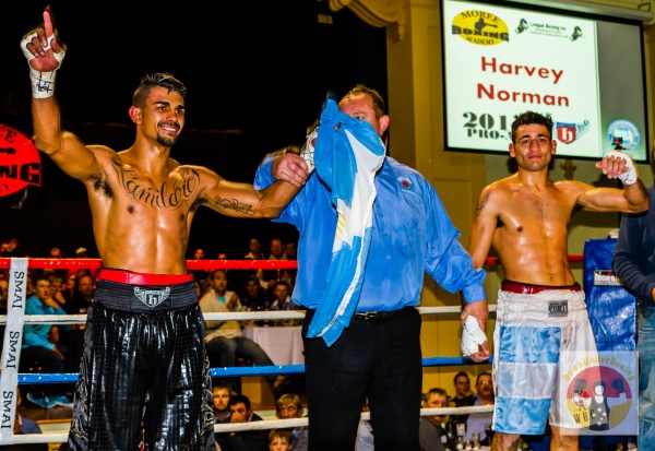 Cameron Hammond vs Alfredo Blanco WBA Oceania. Photos Paul JobberLondon Olympian Cameron Hammond (10-0, 4 KOs) clearly outscored Alfredo Rodolfo Blanco (11-2, 5 KOs) over ten rounds at the Moree Town Hall, Moree, NSW, Australia on Saturday. Scores 100-90, 99-91 and 98-92. Blanco’s style was unorthodox but Cameron gained control in round two and outworked his Argentine opponent in most of the rounds to capture the vacant WBA Oceania welterweight title. “Cameron boxed well against a difficult opponent and this was a good learning fight at this stage of his career,” said Ricky Hatton who guides Hammond’s career under Hatton Promotions.