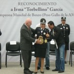 Undefeated Mexico City boxer Irma Garcia (7-0, 1KO) was honored with a special ceremony and presented with her WBA bantamweight title. One of the special guests to take part in the festivities was Mexican superstar Juan Manuel Marquez. In January, Garcia pulled off a big upset over 17-0 Janeth Perez to capture the WBA title with a close ten round unanimous decision. In April they had a rematch and Garcia retained her belt with a close ten round split decision.