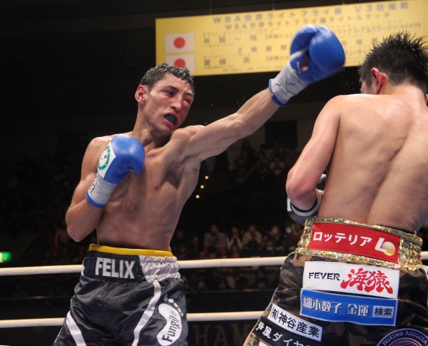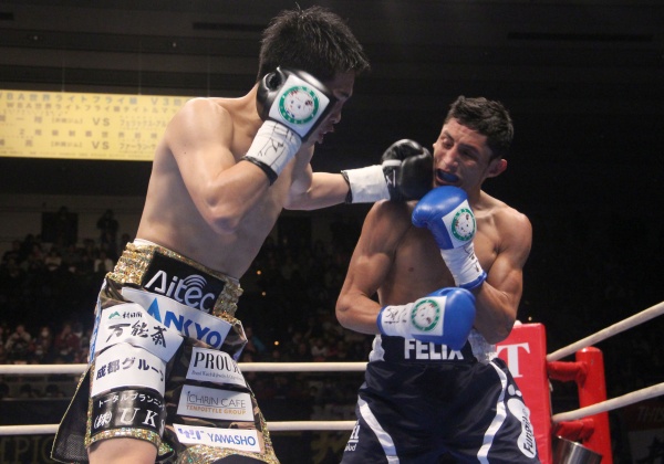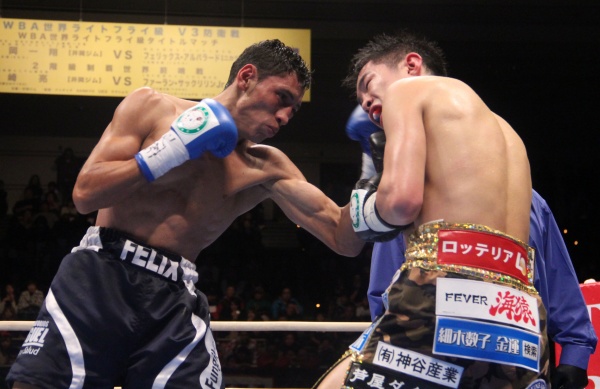 Ioka vs Alvarado. Photos Sumio Yamada Light flyweight champion Kazuto Ioka (14-0, 9 KOs) of Japan won a unanimous decision – 119-109, 115-113, 119-110 – and retained his title for the third time over Felix Alvarado (18-1, 15 KOs) of Nicaragua. Share this: Click to share on Facebook (Opens in new window) Facebook Click to share on X (Opens in new window) X