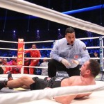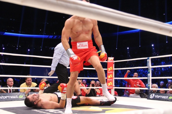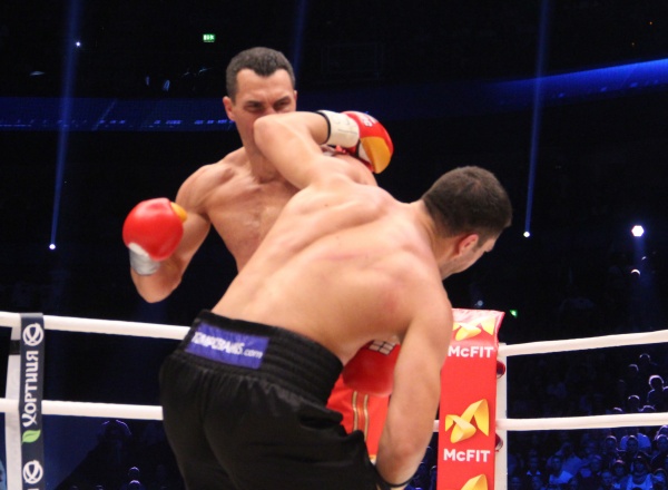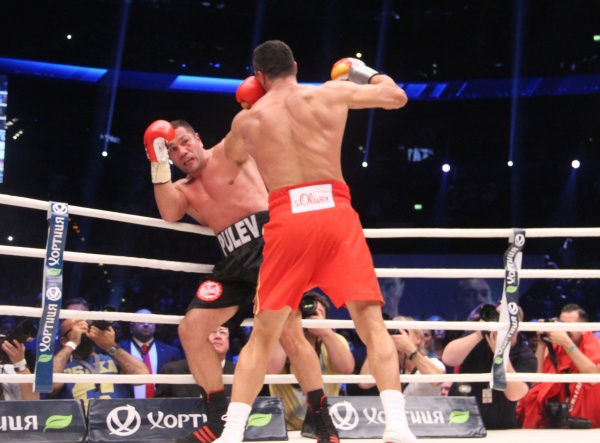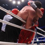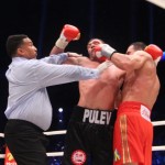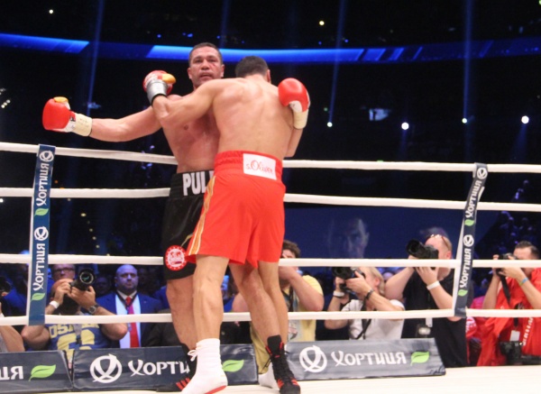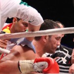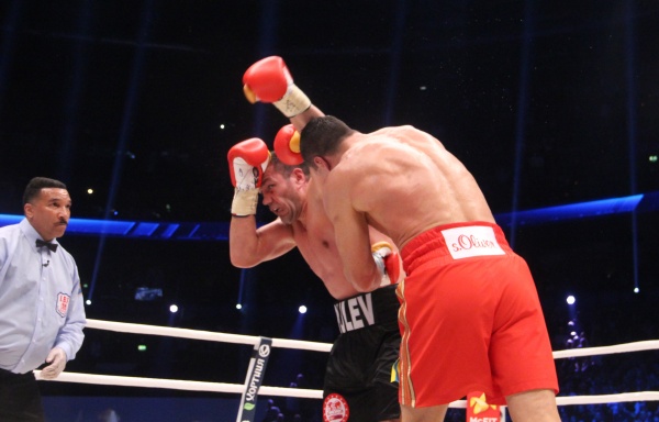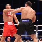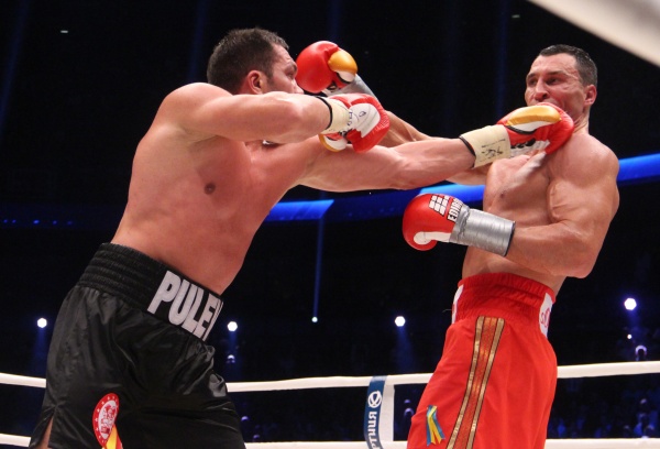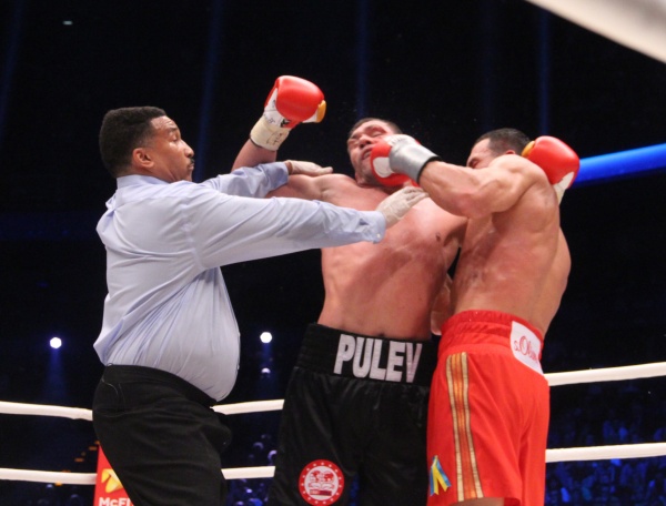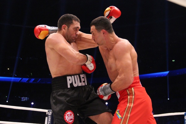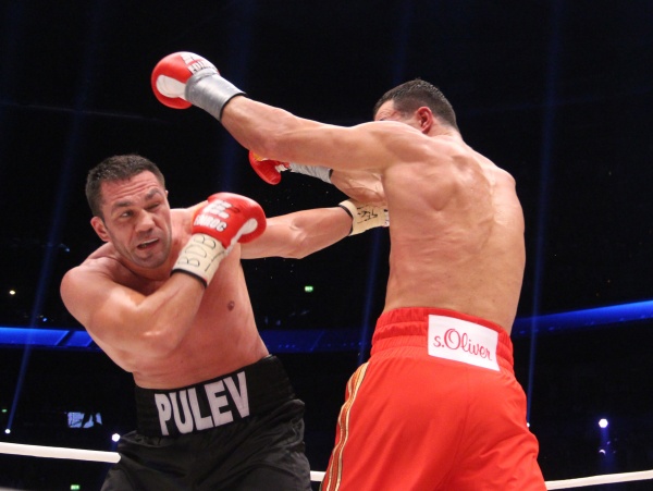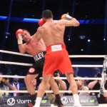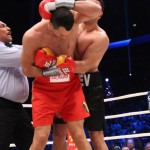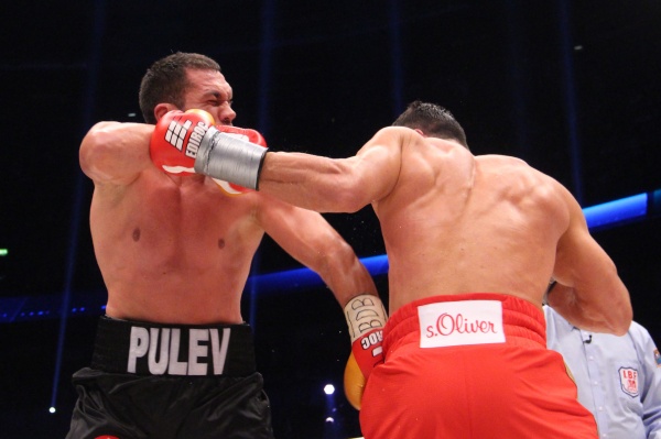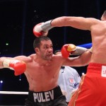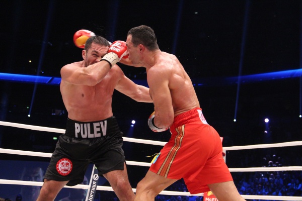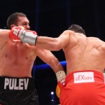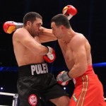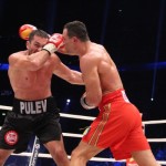 IBF/WBO/IBO/WBA heavyweight Wladimir Klitschko (63-3, 53 KOs) scored a spectacular fifth round KO over previously unbeaten Kubrat Pulev (20-1, 11 KOs) on Saturday night at the 02 Arena in Hamburg, Germany. Pulev came out aggressively and was dropped twice by Klitschko in round one. Klitschko dropped Pulev again in round three and knocked him out in round five. Time was 2:11. A brilliant performance by Klitschko against a highly regarded challenger.