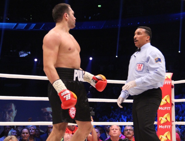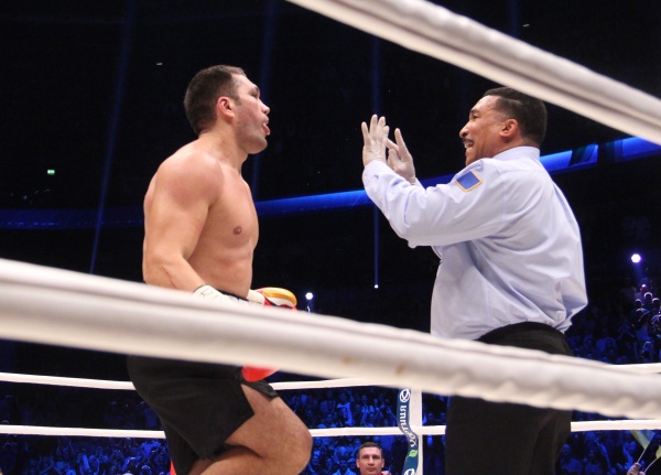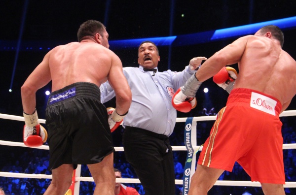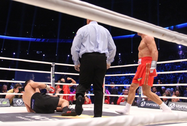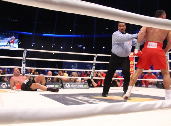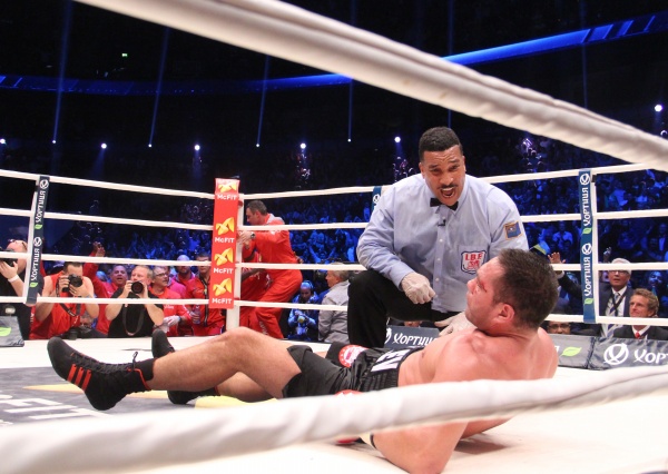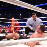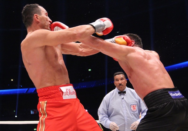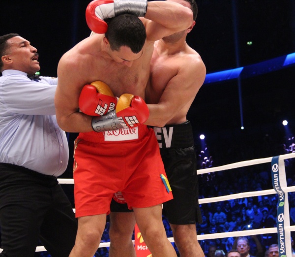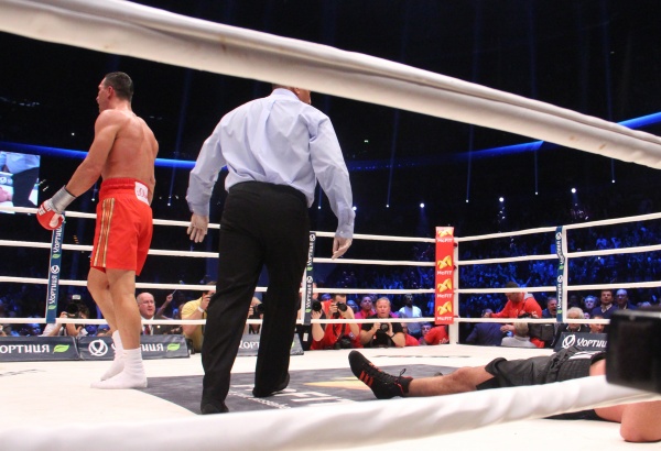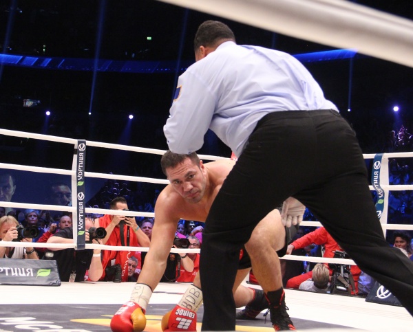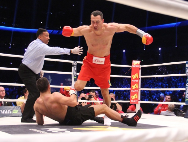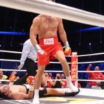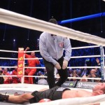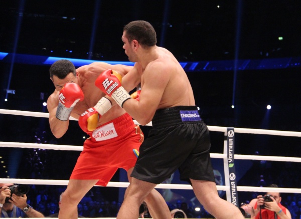 IBF/WBO/IBO/WBA heavyweight Wladimir Klitschko (63-3, 53 KOs) scored a spectacular fifth round KO over previously unbeaten Kubrat Pulev (20-1, 11 KOs) on Saturday night at the 02 Arena in Hamburg, Germany. Pulev came out aggressively and was dropped twice by Klitschko in round one. Klitschko dropped Pulev again in round three and knocked him out in round five. Time was 2:11. A brilliant performance by Klitschko against a highly regarded challenger.