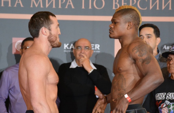 Both fighters made weight ahead of Friday’s showdown in Moscow, Russia. Lebedev tipped the scales at a fighting ready 198.6 lbs., while Kalenga packed 198.8 lbs. into his chiseled physique.