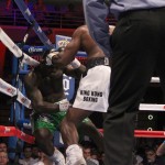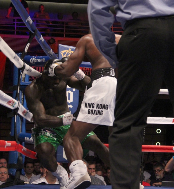 A left hook by Ortiz dropped Kayode in the first minute. Kayode became very defensive and then he was once again rocked by a hard left. This time Ortiz trapped him in the corner and unleashed an arsenal or power punches to force referee Robert Byrd to step in to wave things off. Kayode was out on his feet when the fight was waved off.