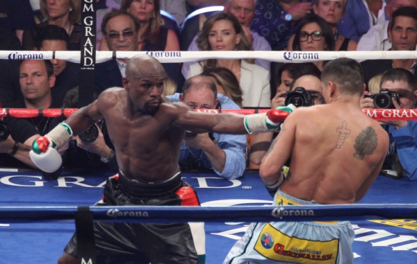 Mayweather vs Maidana. Photos Sumio Yamada In a WBA/WBC welterweight unification fight, Floyd Mayweather (46-0, 26 KOs) had to dig deep to win a twelve round majority decision over a tenacious Marcos Maidana (35-4, 31 KOs) on Saturday night in the MGM Grand Garden Arena in Las Vegas. Share this: Click to share on Facebook (Opens in new window) Facebook Click to share on X (Opens in new window) X