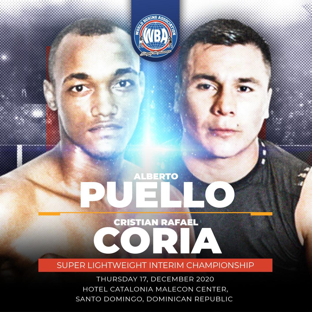 Alberto “Avispa” Puello will make the first defense of his World Boxing Association Interim (WBA) Super Lightweight title on Thursday against veteran Argentinian Cristian Coria at the Catalonia Malecon Center Hotel in Santo Domingo, Dominican Republic.
