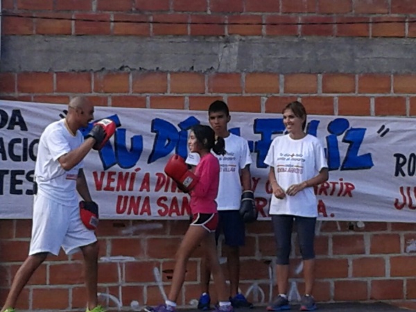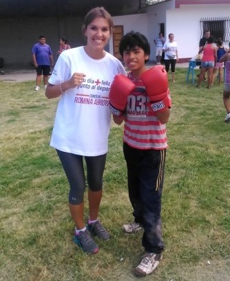With the slogan “Your day + Happy with Sport” (your day happier with sport), international referee and Councilor Romina Arroyo held last Sunday, a boxing clinic with children in Salta, Argentina.