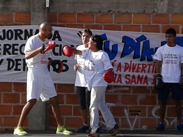 Arroyo shared with more than one hundred youngsters, children and adults of the third age in the Playon Deportivo of Vicente Sola community. There were 15 hours of tae boxing, aerobics, soccer for children, boxing, hockey and other recreational activities that allowed the audience a healthy fun.