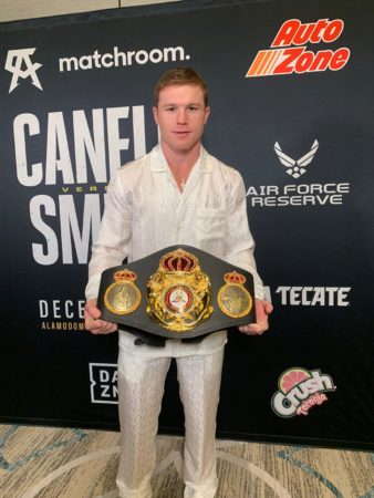 The piece shows “Canelo” with a fist up while containing the inscription “P4P” referring to the Mexican’s position as the current best pound-for-pound boxer.